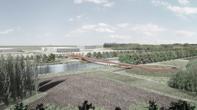 De Provincie Flevoland heeft een fiets- en voetgangersbrug gerealiseerd over de verdubbelde Waterlandseweg (N305) en de Hoge Vaart in Almere, ter hoogte van landschapskunstwerk de Groene Kathedraal en bedrijventerrein Stichtsekant.